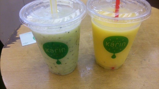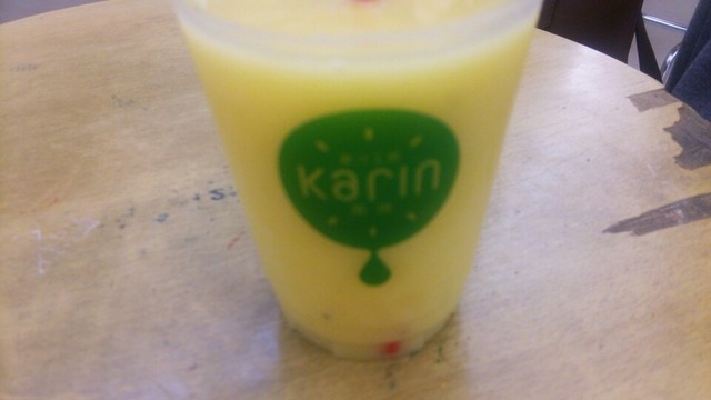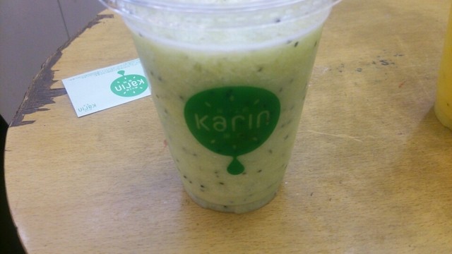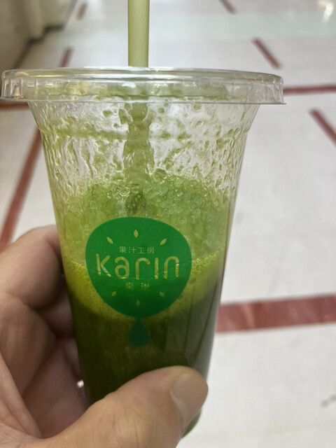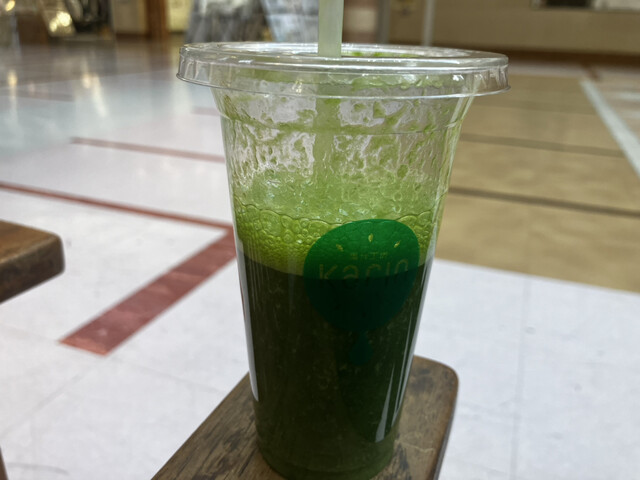 アイシティ21内にある果汁工房果琳さんに立ち寄りグリーンバナナスムージー529円を頂きました。青汁(ケール)が入った野菜系で飲みやすそうだったので決めました。バナナの甘さが際立っていて飲みやすかったです。