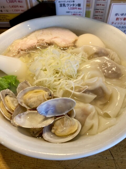 今日もアサリのあのラーメンと決めておりましたが、メニューを見るとワンタンも載っているアサリラーメンもある...