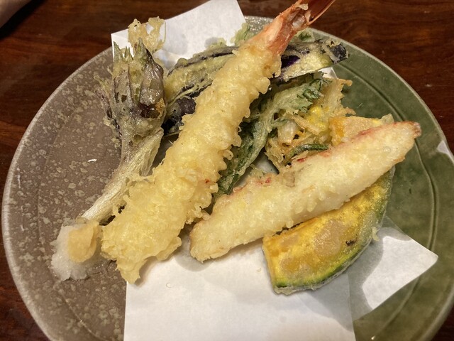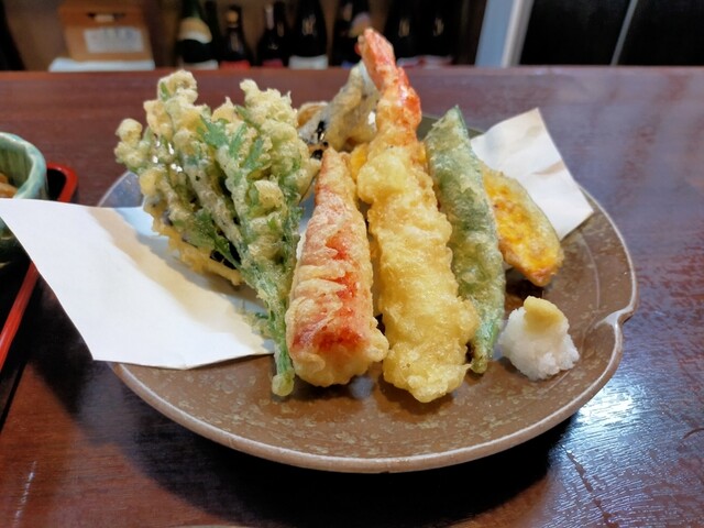 奥飛騨出発前に妻がネットで検索して散々迷った挙句、このお店をチョイス。決め手は山菜天プラ盛りという文字がメニューに記載されていたから笑