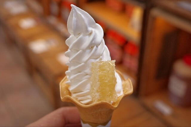「信州蜂蜜ソフト」のポスターに惹かれ、ふらりと立ち寄りました。 ソフトクリームにかける蜂蜜を選べますが、夫と次男は「とちの蜂蜜」、長男は「蕎麦の蜂蜜」、私は「アカシア」に。 蕎... 詳細を見る