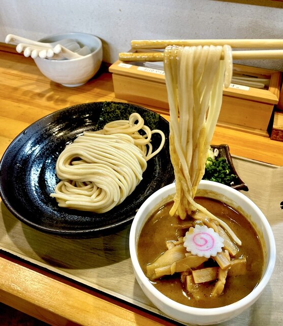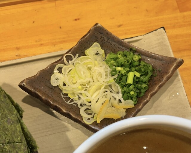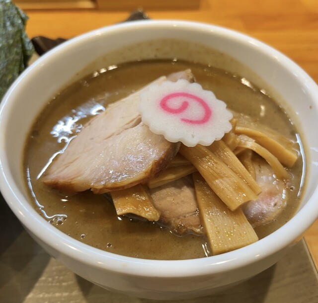火曜日の12時10分に訪問! 10人ほどの待ち! 15分待ち店内へ! ◆食べログ評価『3.64』 ●ここは東京の亀有にあるつけ麺の超有名店『道』で修行された方のお店 これは期待値高まるね! 注文は得製濃厚魚介つけそば中盛り1,400円! 平日は中盛りが無料... 詳細を見る