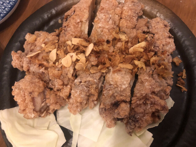 ニンニクの効いた醤油ダレに漬けて揚げた「山賊焼」が堪らない◎