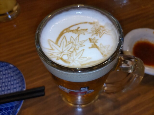 松本駅近くの飲み屋街にあります。 外観は「スタミナやきとり」の看板が目立つ店構え。 生ビール、焼き鳥、から揚げを注文します。 生ビールが出てきてビックリ! 泡アート... 詳細を見る