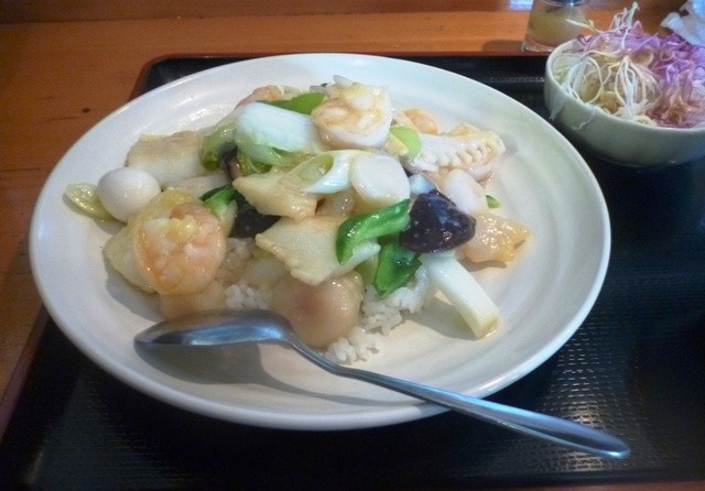 今回は、塩尻 摩天楼さん。Aセット (醤油ラーメン・半チャーハン・サラダ) 930円。