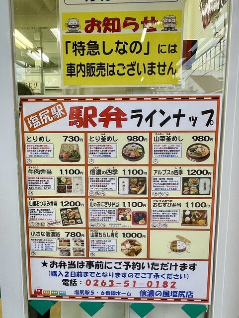 塩尻駅で特急しなの乗り換える時に駅ホームの売店