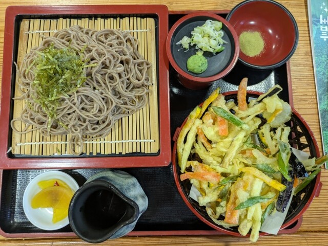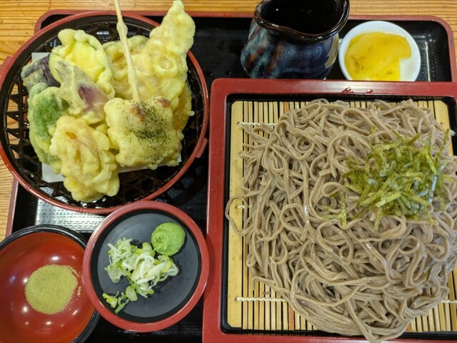天ざるの特盛を頼みました!お蕎麦の量が半端ないです笑笑。食べても食べても減らない…ヒーヒー言いながら何とか完食しました〜。お蕎麦の味がしっかりとした田舎蕎麦なのにお汁にパンチが無くてお蕎麦に負けてしまってるのが残念でした。