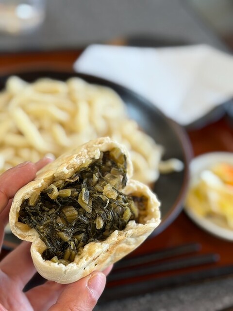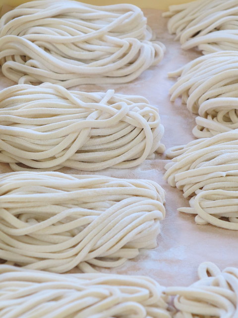 地元の豆乳を使った固く、コシが強いうどんが名物です。