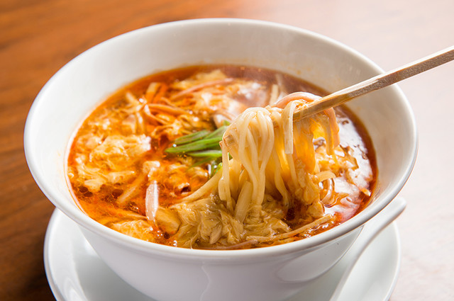 名物は赤坂店(閉店)(※)で賄いとして提供していた「スーラータンメン(酸辣湯麺)」。