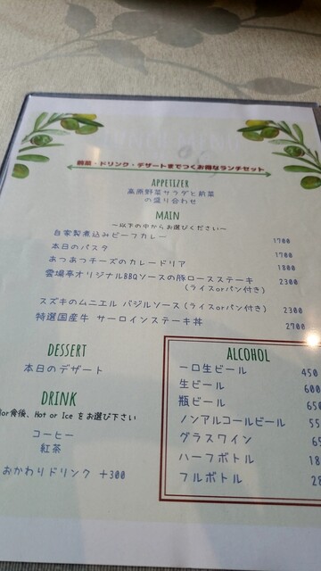 | 空間・設備 | オシャレな空間、落ち着いた空間、オープンテラスあり |