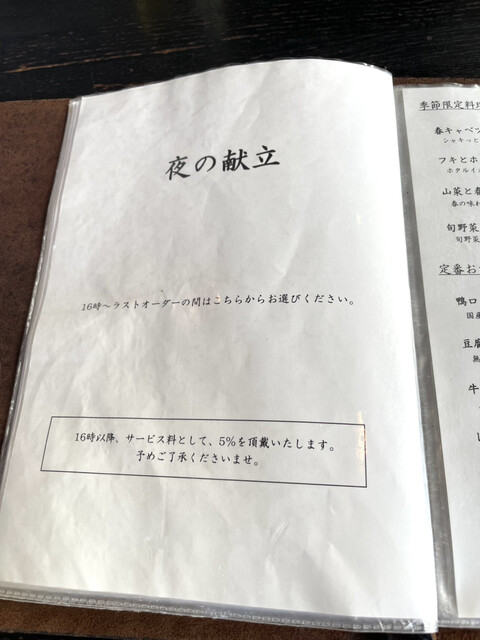 サービス料、16時から5%頂きます。 |