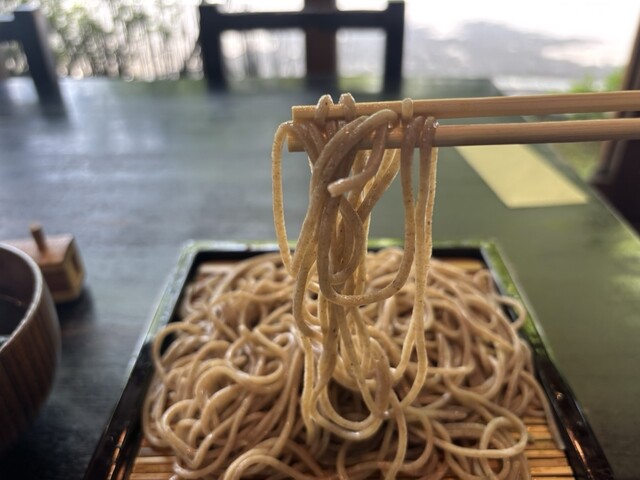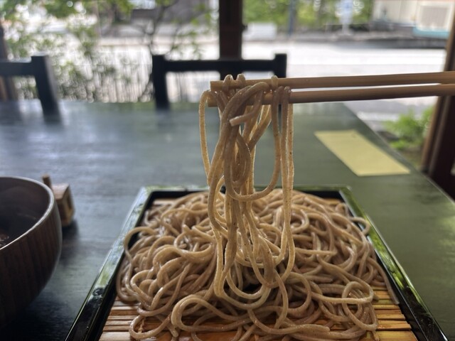 角が立ってなくて断面を見ると少し丸い粗挽きの二八蕎麦。