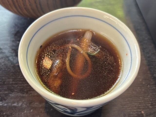 蕎麦猪口につけ汁と蕎麦湯をほっこり。