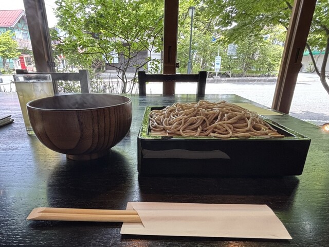 軽井沢駅から1.5㎞程離れた旧軽井沢銀座商店街の入口にある、2000年開業の人気蕎麦ダイニング。
