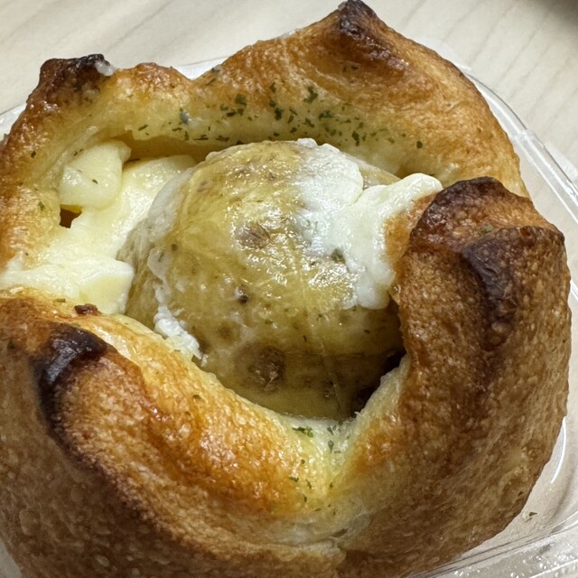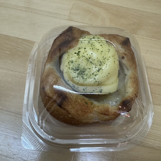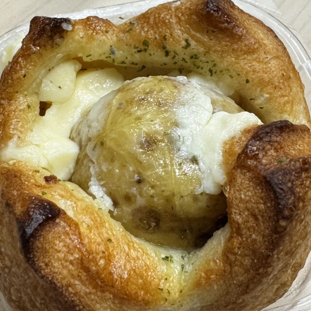「フランスパン生地で白いもを(ほぼ)丸ごと包んだボリューム満点の商品です。じゃがいも、バター、マヨネーズの相性は抜群です。
