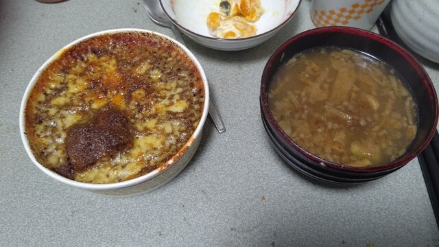 電子レンジで温め、さらにオーブンでこんがりに仕上げました。