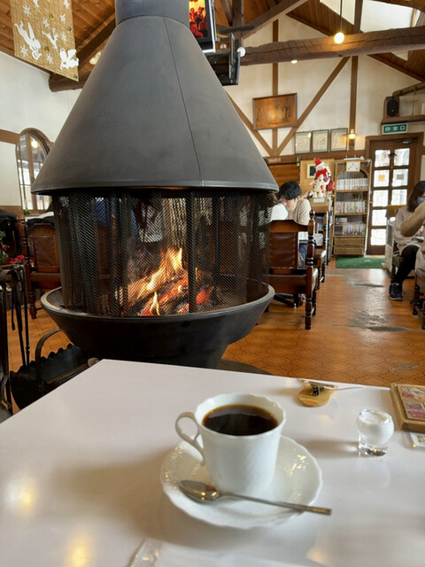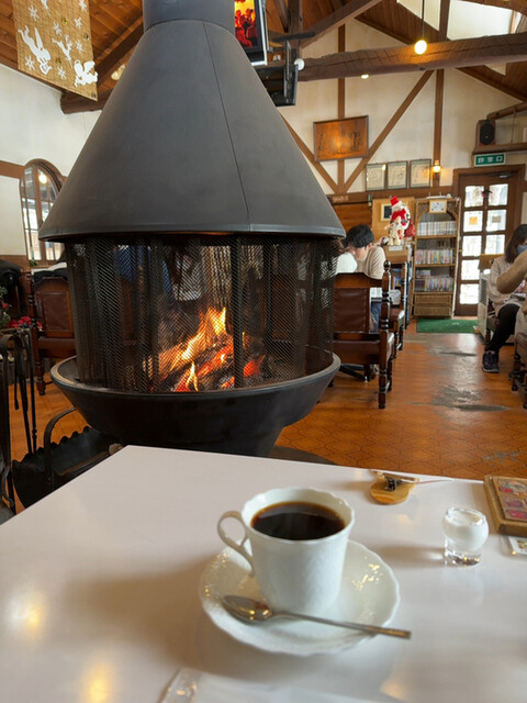 寒さ厳しい時季には、手巻き時計のある懐かしさ漂う室内で、暖炉を眺めながら温かいコーヒーを飲み、ホッと一息。