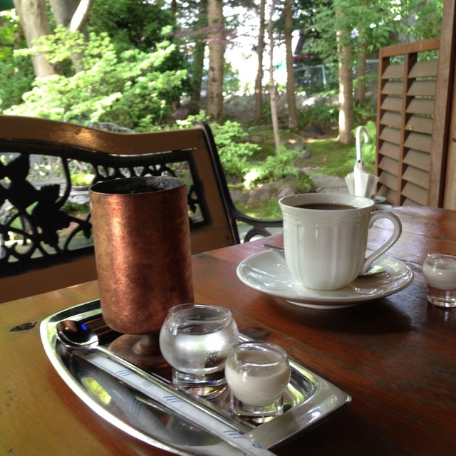 軽井沢駅北口から徒歩2分、水出しコーヒーとオリジナルチョコレートケーキが人気の喫茶店。