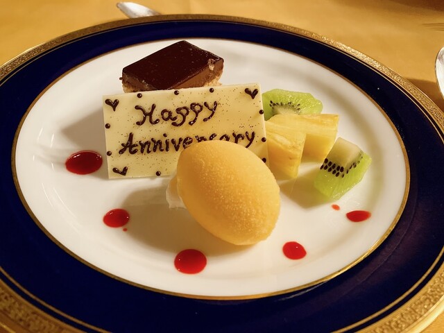 最後のデザートは、記念日バージョンにしてもらい、さすがのホテルのおもてなしでした。