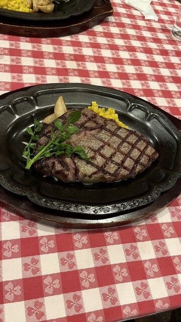 今回は数量限定ハンバーグと300グラムのリブロースステーキ、ポパイサラダとオニオンスープ、ガーリックライスの大を注文。