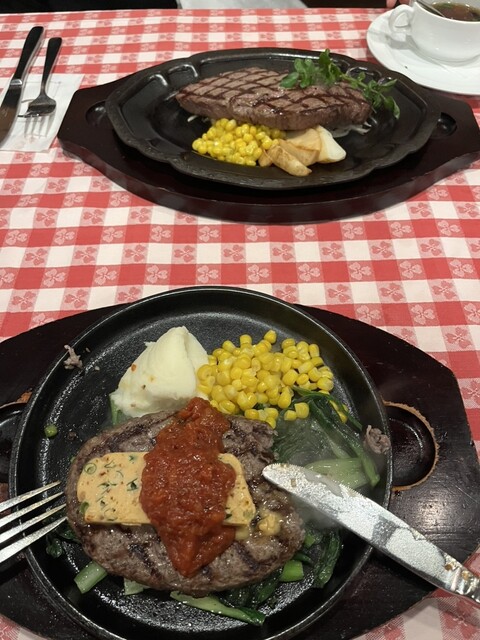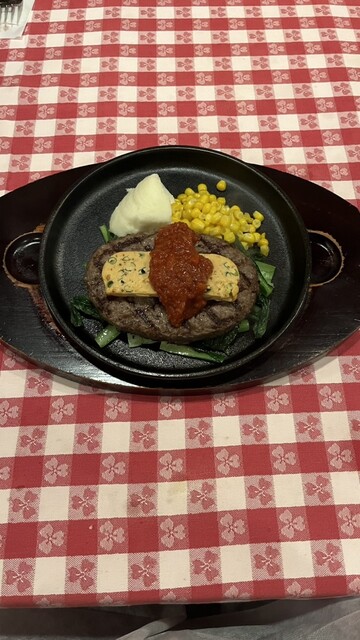 ハンバーグは甘めのトマトソースとバターがかかっており、わりとこってりしていました。ボリューム満タンでした^ ^
