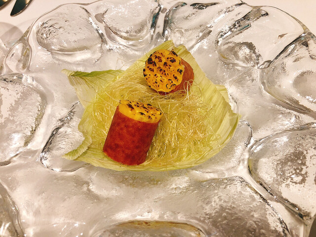 フランス語で“隠れ家”を意味するエルミタージュを冠した店名に偽りなく、まさに軽井沢の緑に包まれるように佇む一軒家レストランが【エルミタージュ・ドゥ・タムラ】です。シェフの田村良雄氏は、渡仏経験や東京の西麻布で人気を博した【ラフェドール】のオーナーシェフを経て、軽井沢へ。豊富な経験をベースに独自のアイデアを光らせたフランス料理が楽しめます。なかでも氏のスペシャリテである『桃の冷たいスープ』は、九州から山梨まで国産の桃が手に入る期間のみ供される特別なひと皿。熟れた桃の香りはそのままに、すっきりとコンソメが広がる味わいは、軽井沢に夏の到来を告げる逸品として多くの美食家に親しまれています。 |