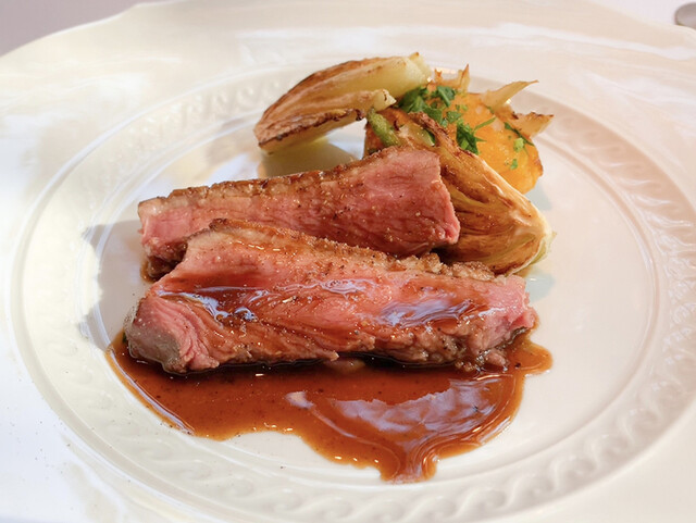 フランス語で“隠れ家”を意味するエルミタージュを冠した店名に偽りなく、まさに軽井沢の緑に包まれるように佇む一軒家レストランが【エルミタージュ・ドゥ・タムラ】です。シェフの田村良雄氏は、渡仏経験や東京の西麻布で人気を博した【ラフェドール】のオーナーシェフを経て、軽井沢へ。豊富な経験をベースに独自のアイデアを光らせたフランス料理が楽しめます。なかでも氏のスペシャリテである『桃の冷たいスープ』は、九州から山梨まで国産の桃が手に入る期間のみ供される特別なひと皿。熟れた桃の香りはそのままに、すっきりとコンソメが広がる味わいは、軽井沢に夏の到来を告げる逸品として多くの美食家に親しまれています。 |