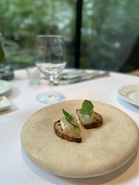 ガラス張りの窓際のお席から見える緑の景色を楽しみたくお昼で予約しました☺︎