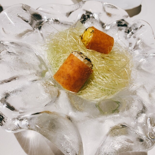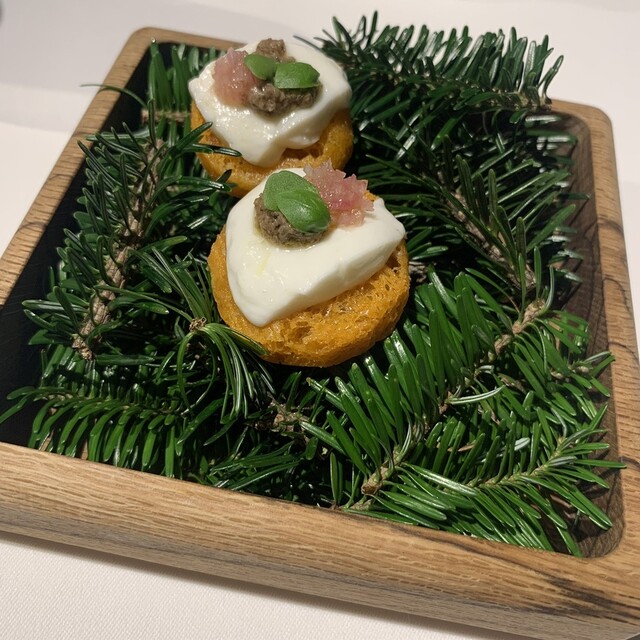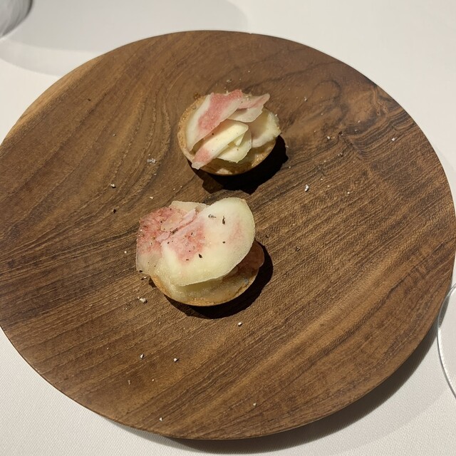 フランス語で“隠れ家”を意味するエルミタージュを冠した店名に偽りなく、まさに軽井沢の緑に包まれるように佇む一軒家レストランが【エルミタージュ・ドゥ・タムラ】です。シェフの田村良雄氏は、渡仏経験や東京の西麻布で人気を博した【ラフェドール】のオーナーシェフを経て、軽井沢へ。豊富な経験をベースに独自のアイデアを光らせたフランス料理が楽しめます。なかでも氏のスペシャリテである『桃の冷たいスープ』は、九州から山梨まで国産の桃が手に入る期間のみ供される特別なひと皿。熟れた桃の香りはそのままに、すっきりとコンソメが広がる味わいは、軽井沢に夏の到来を告げる逸品として多くの美食家に親しまれています。 |