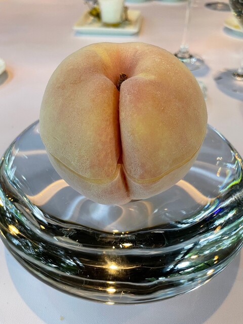 フランス語で“隠れ家”を意味するエルミタージュを冠した店名に偽りなく、まさに軽井沢の緑に包まれるように佇む一軒家レストランが【エルミタージュ・ドゥ・タムラ】です。シェフの田村良雄氏は、渡仏経験や東京の西麻布で人気を博した【ラフェドール】のオーナーシェフを経て、軽井沢へ。豊富な経験をベースに独自のアイデアを光らせたフランス料理が楽しめます。なかでも氏のスペシャリテである『桃の冷たいスープ』は、九州か...ら山梨まで国産の桃が手に入る期間のみ供される特別なひと皿。熟れた桃の香りはそのままに、すっきりとコンソメが広がる味わいは、軽井沢に夏の到来を告げる逸品として多くの美食家に親しまれています。
