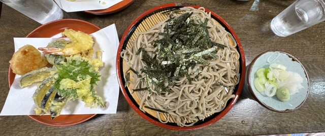 長野旅行でのお昼ご飯で伺いました。以前、親と来たことがありました。今回は、妻と子と来ました。天ざるをいただきました。そばの切り方、天ぷらの食材など、手作り感があり、おいしかったです。駅とお店の間に、お店の駐車場があります。また来たいです。
