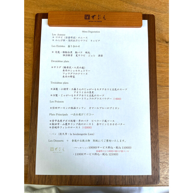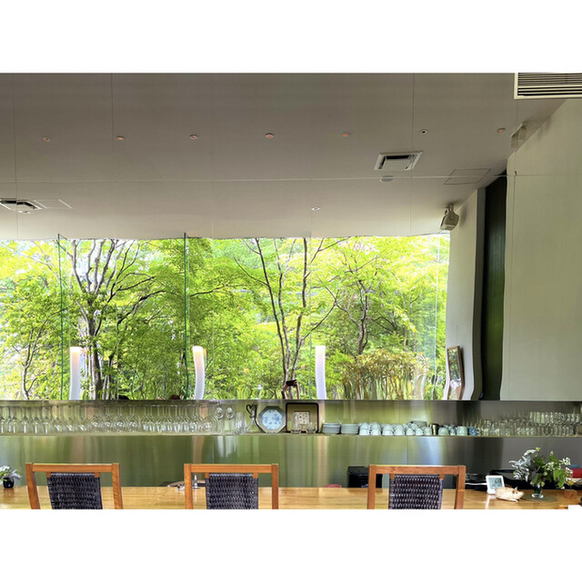 森の中に居るかのような、非日常的な空間。【無彩庵 池田】では、季節の移ろいを感じながら、こだわりのフランス料理が味わえます。シェフが見極めた野菜は、すべて生産者の顔が見えるもの。生産者達との交流で生まれる、食材の組み合わせなど、遊び心も大切にしている一皿はどれも絶品です。中でも、とろける美味しさが特徴的な「信州サーモン」をつかった『八千穂・佐々木さんの信州サーモンの低温コンフィ 山のブイヤベ...