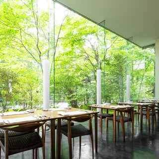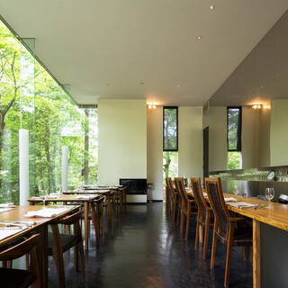 自然の温かさに溢れた店内。季節で変わる旬の食材をつかったフランス料理が味わえる