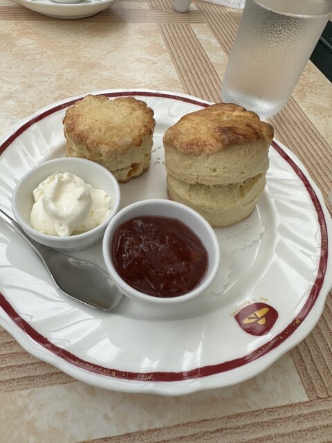 スコーンにクロテッドクリームとジャムをたっぷりつけて食べると最高。紅茶ともマッチして、とても美味しく...