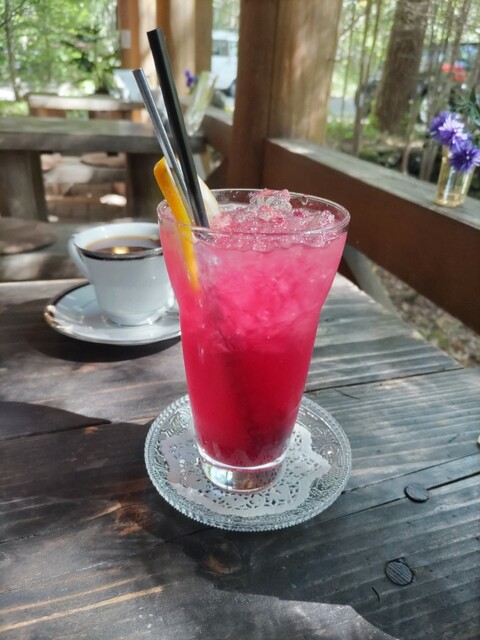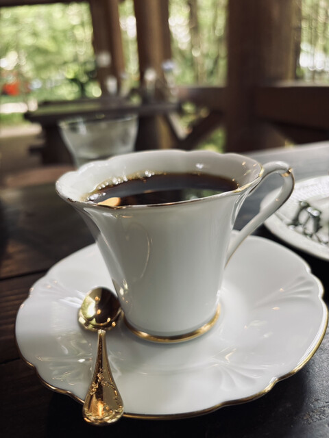 もの静かな中軽井沢の林の中に、ひっそりと佇む喫茶店☕️です。ジョン・レノンが1977年から3年間に渡って、夏の間に家族で訪れていたということで、いつか絶対に行ってみたいと思ってました。さて、白糸の滝で...