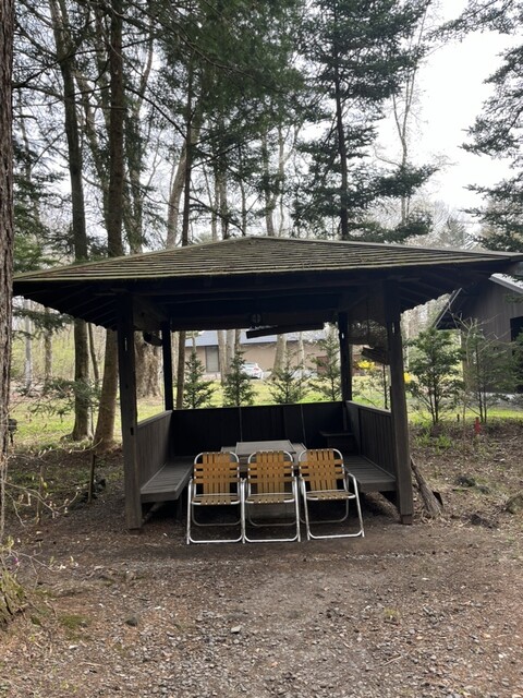 ジョン・レノンがいつも座っていたという東屋は、現在は利用すること...