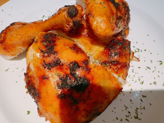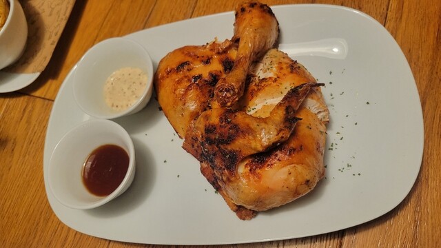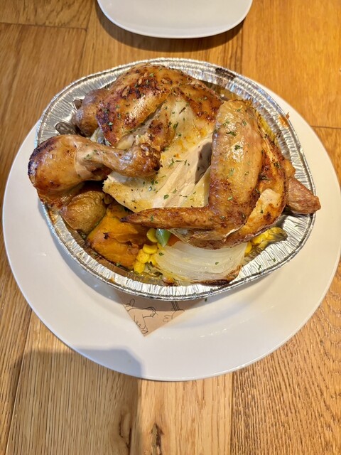 イチオシのローストチキンは安心安全な鶏を厳選し鹿児島から取り寄せております。丁寧に下ごしらえした後、一晩特製ソースに漬け込み、さらに一時間かけてオーブンで焼き上げます。程よく脂が落ち、とってもヘルシー。パリパリの皮がたまりません!ワインやビールにもぴったりです。 シンプルでゆったりとした店内で気軽にワイワイガヤガヤと楽しんで下さい!