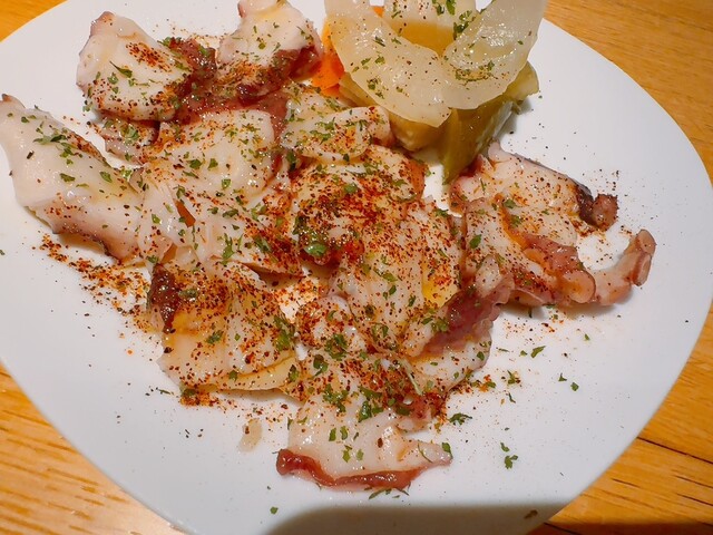 軽井沢の小旅行の最後の夜にローストチキンで有名なカスターニエさんにおじゃましました。なかなか予約が取れないお店で有名ですが、運良くキャンセルが出たのか急遽ネット予約が取れました。メニューよりベースのカップルセットを注文して追加オプションでチキンボックス(ハーフチキンとゴロゴロ野菜のロースト(更に追加でマスタードソース)を注文しました。豆乳のコーンスープ、アンチョビのピザも追加注文。まずタコのガリシ...