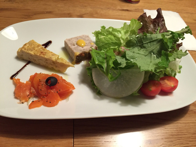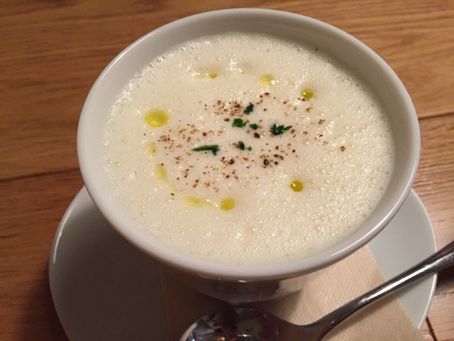 軽井沢の小旅行の最後の夜にローストチキンで有名なカスターニエさんにおじゃましました。なかなか予約が取れないお店で有名ですが、運良くキャンセルが出たのか急遽ネット予約が取れました。メニューよりベースのカップルセットを注文して追加オプションでチキンボックス(ハーフチキンとゴロゴロ野菜のロースト(更に追加でマスタードソース)を注文しました。豆乳のコーンスープ、アンチョビのピザも追加注文。まずタコのガリシ...