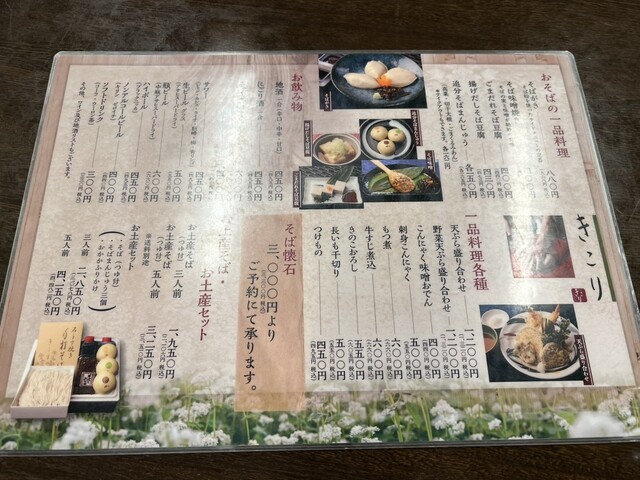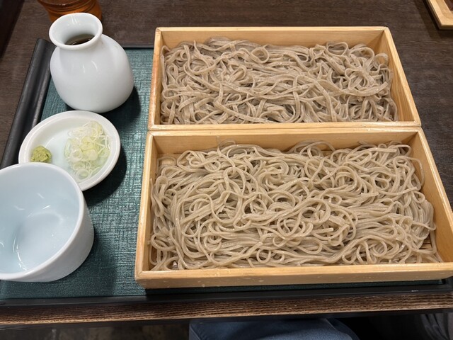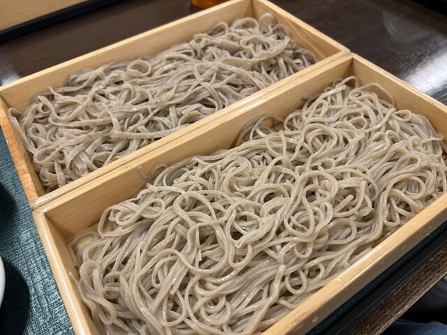 更科そば又は田舎そばを選び二種類の蕎麦を楽しめるメニュー。