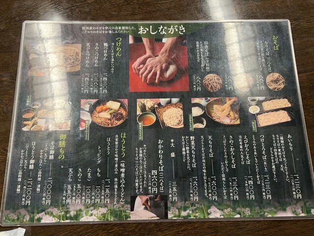 玄そばは浅間山麓産(軽井沢・御代田・小諸)を石臼で挽いた手打ち。