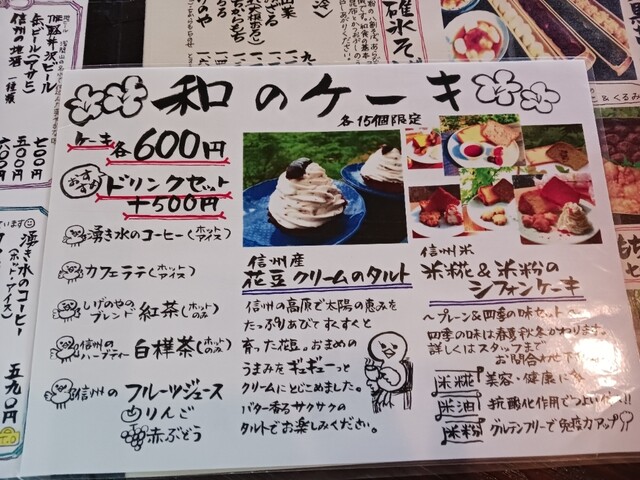 | 空間・設備 | カウンター席あり、座敷あり、オープンテラスあり |