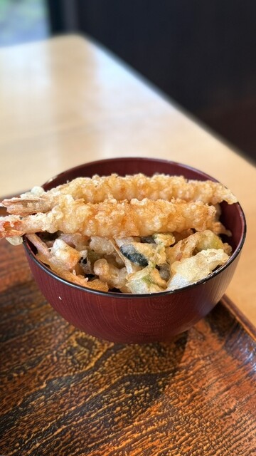 そして【ミニ天丼】…これご飯よりも天ぷらが山盛り✨海老天や季節の野菜天が入っていてとても美味しかったです。