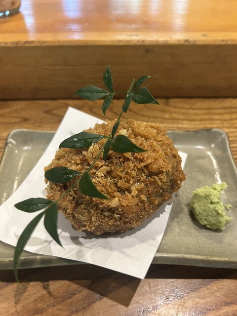 衣がカリッカリッで中はとろっとしていて甘みがありめちゃくちゃ旨い!!これはかなりクオリティ高いね!!わさび醤油の辛さとも相性抜群!