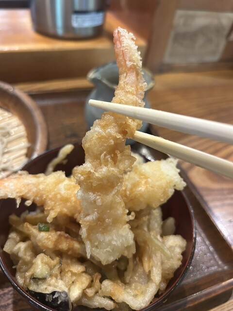 かき揚げもごぼうや玉ねぎやにんじんなど具沢山でめちゃくちゃ旨い!