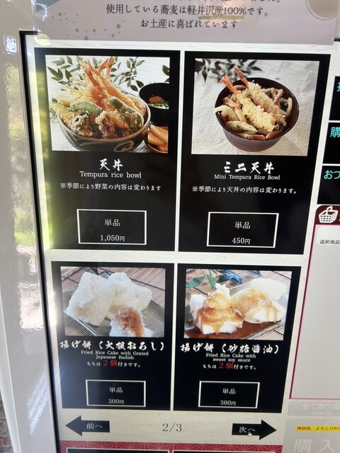 小天丼はかき揚げの上にエビが2尾乗っているね!