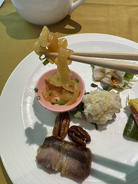 ❶-①「クラゲの冷菜」…コリコリ食感の定番。