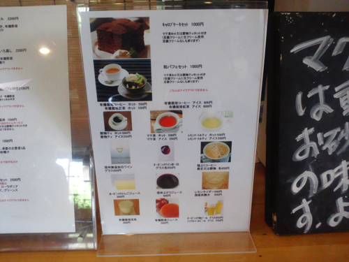 レストランの奥では有機野菜・有機食品や自然化粧品・エコロジー雑貨も沢山陳列されており販売もしている。