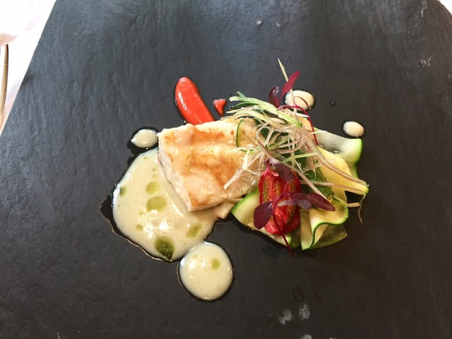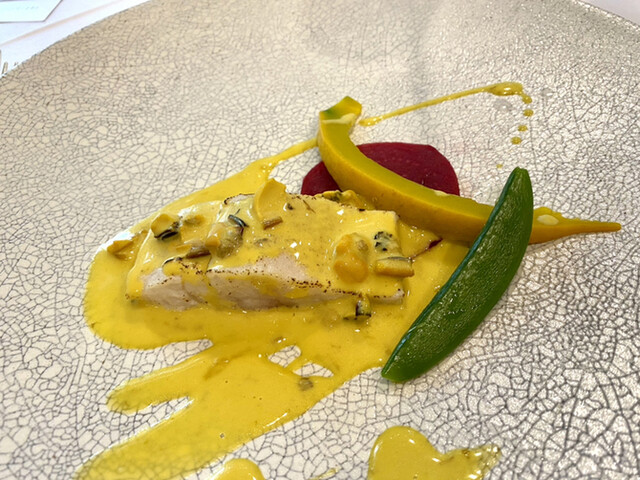 ・デュカをまとったスズキのポワレ アメーラトマトとライム