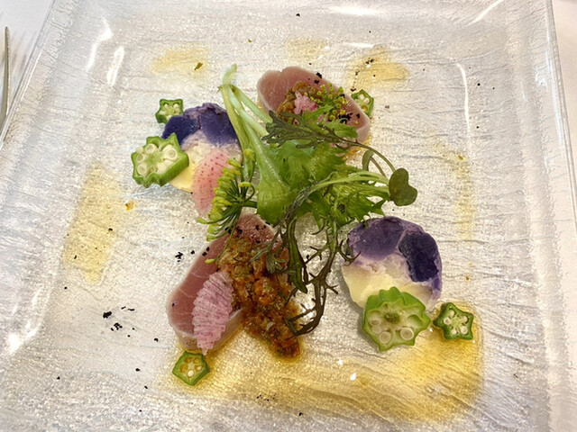 ・鮪とじゃがいも、セミドライトマトとケッパーのソース
