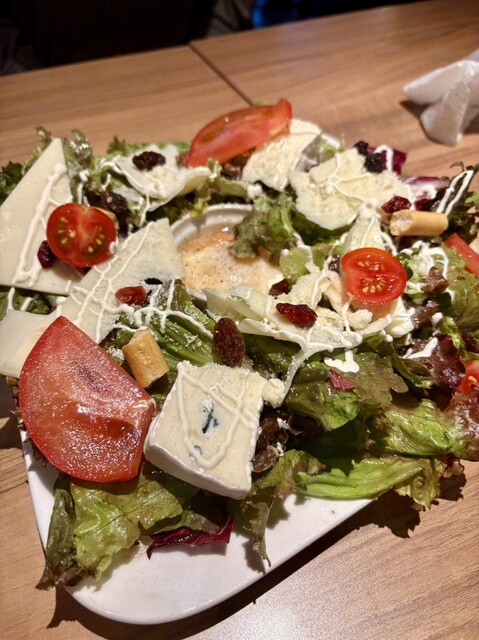 サラダは、ボリューミーで、いろいろなチーズが